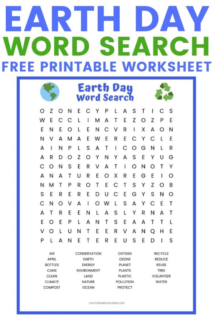 Earth Day Word Search Free Printable Worksheet | Earth Printable Worksheets, Source Image: crayonsandcravings.com
